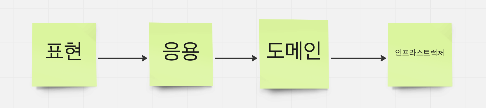 '표현', '응용', '도메인', '인프라스트럭처' 의 네 영역입니다.