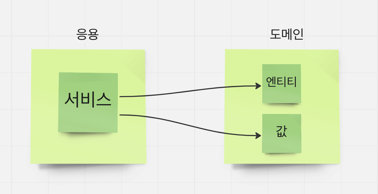 위의 그림과 같이 응용 영역은 도메인 모델을 활용하여 사용자에게 제공해야 하는 기능을 구현하며 실제 도메인 로직 구현은 도메인 모델에서 이루어지게 됩니다.